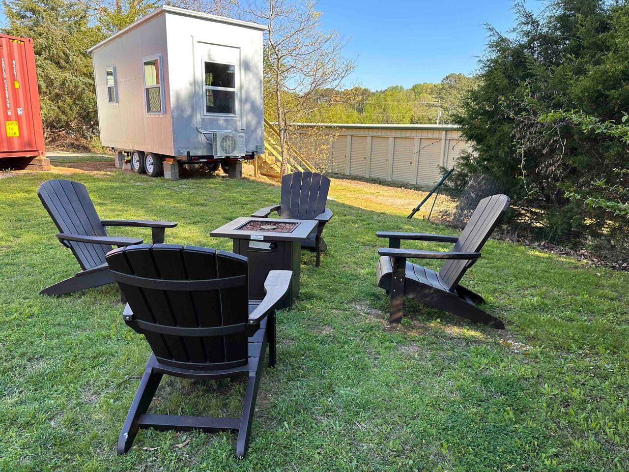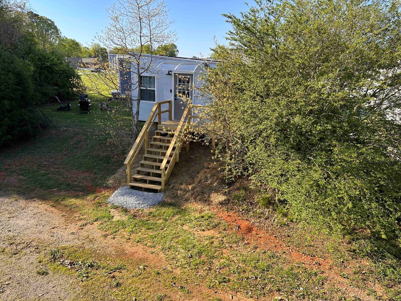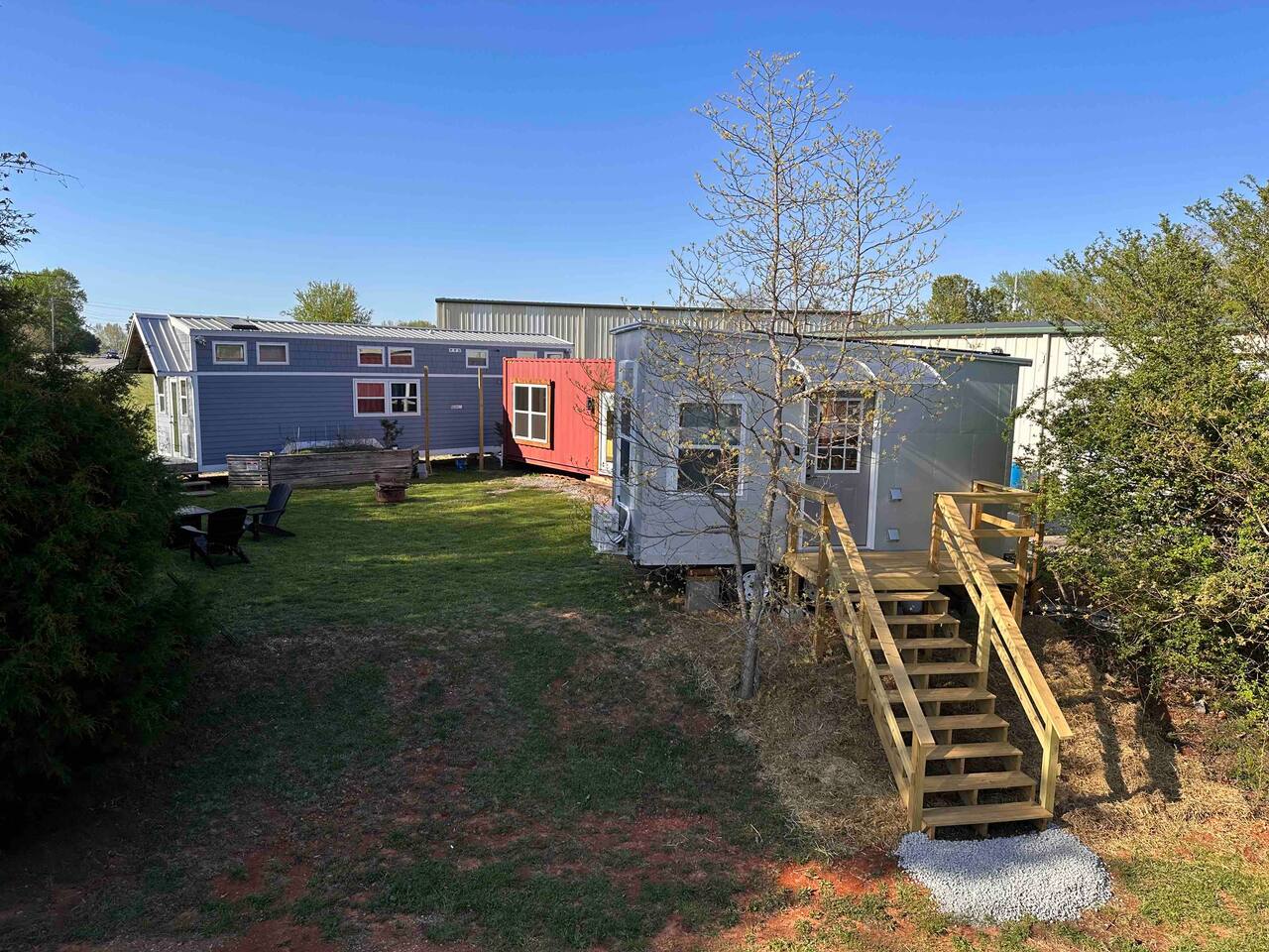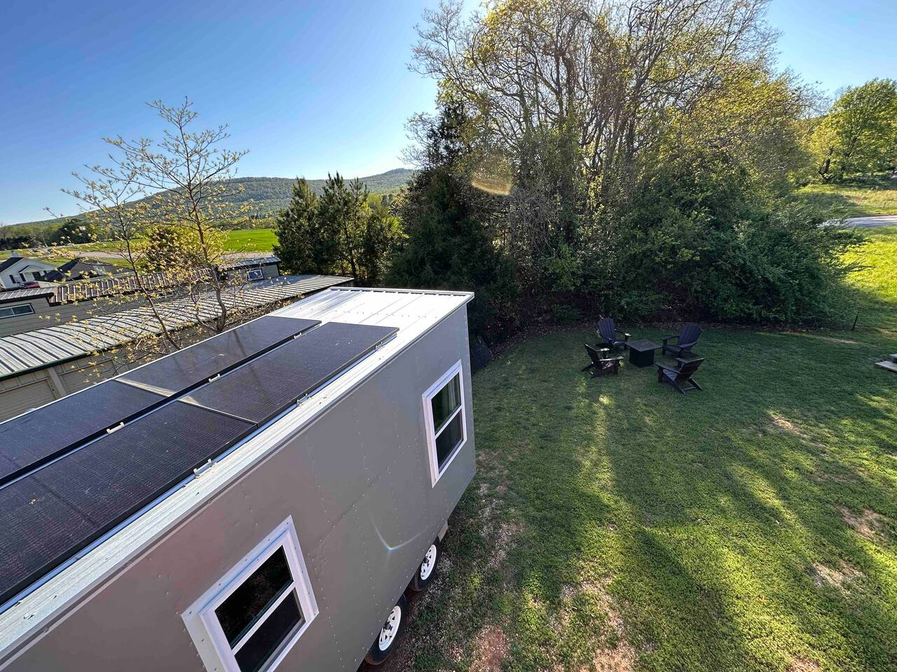 Guests will have full exclusive access and use of the tiny house, private partially-covered tiny deck out front, and access to shared grassy space behind, including raised vegetable garden access, grassy area with fire pit, and gas grill as well as private parking. Space is lined on one side by trees; mini storage building is located in front down below stairs (I use myself only for long-term storage, no one else has access). Great view over top of the mini storage building of Monte Sano and the hills full of trees. A shipping container is located adjacent to the back of the tiny house (future tiny house conversion) and a large metal warehouse is towards the front of the property, which can be seen from the bathroom window, but the home faces toward the back wth a nice view of the wooded hills. The warehouse building is occupied (by myself and my tenant) and there may be other cars parked in front of the warehouse building during business hours (other side of building off street). Very private on back side where tiny house is located near edge of property and tree line. One other tiny house on the other side of the grassy area and raised garden, adjacent to the shipping container, may contain Airbnb guests as well who will share access to the garden, grassy area and firepit or grill (directly behind the raised gardenbed). Parking - please park to the right of the staircase of the spRocket, directly in front of the tiny house. Then just walk up the stairs and enjoy! *Got a Tesla electric vehicle? We have you covered! I have a 60amp Tesla wall charger that you can charge your vehicle with at no cost (up to 11kwh) while staying at the tiny house, just send me a message ahead of time for instructions and access.