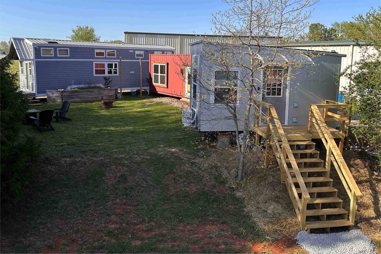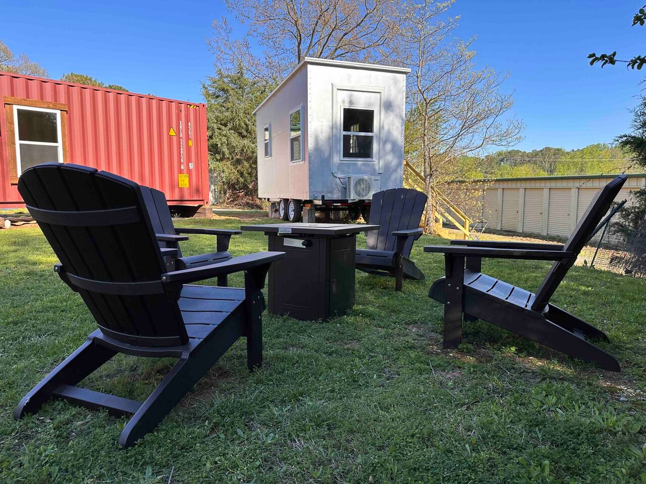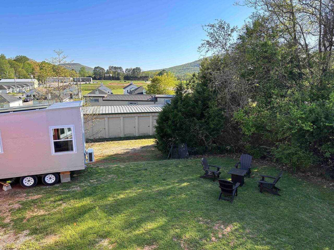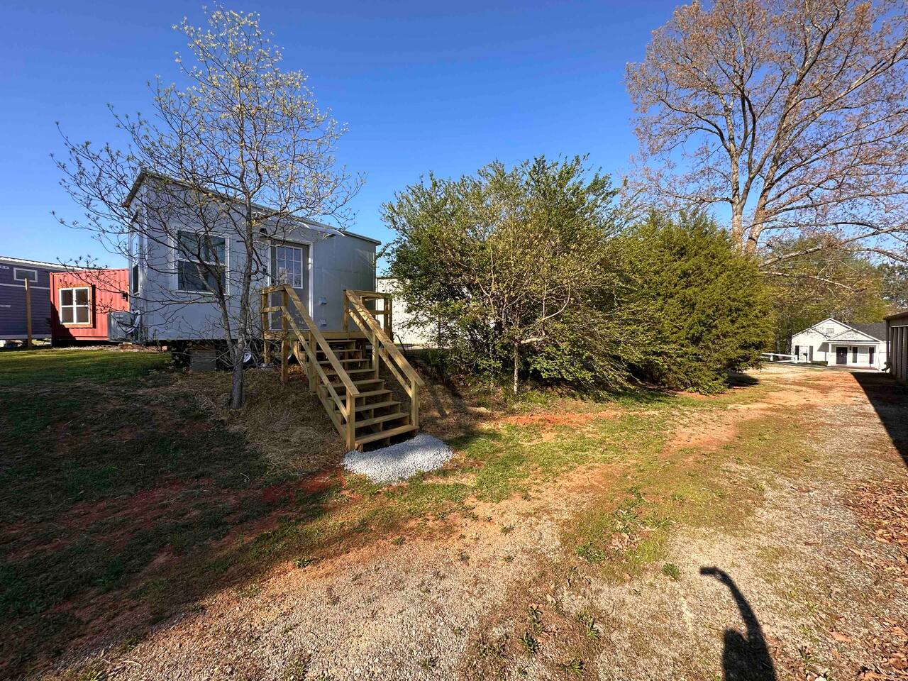 Guests will have full exclusive access and use of the tiny house, private partially-covered tiny deck out front, and access to shared grassy space behind, including raised vegetable garden access, grassy area with fire pit, and gas grill as well as private parking. Space is lined on one side by trees; mini storage building is located in front down below stairs (I use myself only for long-term storage, no one else has access). Great view over top of the mini storage building of Monte Sano and the hills full of trees. A shipping container is located adjacent to the back of the tiny house (future tiny house conversion) and a large metal warehouse is towards the front of the property, which can be seen from the bathroom window, but the home faces toward the back wth a nice view of the wooded hills. The warehouse building is occupied (by myself and my tenant) and there may be other cars parked in front of the warehouse building during business hours (other side of building off street). Very private on back side where tiny house is located near edge of property and tree line. One other tiny house on the other side of the grassy area and raised garden, adjacent to the shipping container, may contain Airbnb guests as well who will share access to the garden, grassy area and firepit or grill (directly behind the raised gardenbed). Parking - please park to the right of the staircase of the spRocket, directly in front of the tiny house. Then just walk up the stairs and enjoy! *Got a Tesla electric vehicle? We have you covered! I have a 60amp Tesla wall charger that you can charge your vehicle with at no cost (up to 11kwh) while staying at the tiny house, just send me a message ahead of time for instructions and access.
