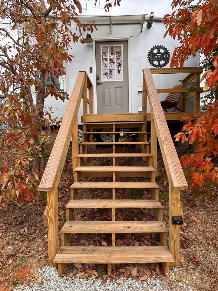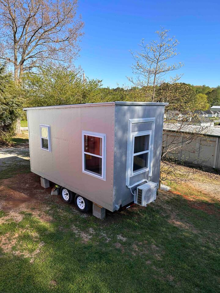 The spROCKET Tiny House is just east of Huntsville City Limits off Highway 72 - a straight shot to downtown Huntsville (2 stop lights)... *8 miles / 12 min = VBC / Mars Music Hall / Downtown HSV *9 miles / 13 min = Huntsville Hospital *10 miles / 14 min = Campus No. 805 / Stove House (breweries, restaurants) *11 miles / 12 min = UAH *11 miles / 15 min = "The Joe" Joe Davis Soccer Stadium for Huntsville City FC *14 miles / 18 min = Bridge Street (open air mall, movie theater, dining, etc) *15 miles / 19 min = NEW Orion Amphitheater / Mid City Complex (The Camp, Topgolf, Dave & Busters, much more...) *17 miles / 20 min = Toyota Field (Rocket City Trash Panda's - baseball) *20 miles / 21 min = HSV International Airport The Tiny House on Wheels is located on the back lot of my commercial warehouse building, with trees on either side of the front of it, a grassy small yard on the back side & raised garden bed along with 2 other tiny houses (creating a private contained tiny home yard/area), with a 100 foot gravel driveway to it from the street. Downhill from the home is a small mini-storage building that I use for long-term storage (no one else has access). Over the top of the mini storage building from the deck you have a great view of the tree'd forest & Monte Sano, especially near dusk the view is warm and comforting! Front light on porch, lights up staircase to front door, Ring doorbell security cameras and motion sensors for your peace of mind in this quiet, peaceful area with free parking right in front next to the staircase (also monitored with motion-detecting security cameras for your peace of mind). ---------- Huntsville, Alabama - also known as Rocket City for all the rocket scientists and engineers in town, as well as the Space & Rocket Center - is one of the fastest (if not the fastest) growing cities in Alabama, set to become the largest city in Alabama in just a few years. A very diverse city and economy, with lots of government contracting and military, including the new FBI building, large tech presence from Gooogle & Faceboook, a Mazda-Toyota plant, the future headquarters of the U.S. Space Force, Blue Origin rocket company, the large and ever exanding Huntsville Hospital system, UAH & Alabama A&M Universities, and so much more. Huntsville is also the new home to the minor league baseball Trash Pandas, the new Huntsville City FC (MLS Next Pro soccer) and Huntsville Havoc (hockey). The new Orion Amphitheater has also just been completed attracting a new slew of great musical talents (as well as the smaller more intimate Mars Hall downtown). >> Forget something? Dollar General is just down the street (1 min walk) from the tiny house and has virtually everything you could need and open 7am-11pm every day >> Great pizza joint around the corner - DJs pizza. Trust me, you'll be surprisingly impressed with the thin crust pizza! >> Great hikes just a few miles away atop Monte Sano State Park with great views of the city as well