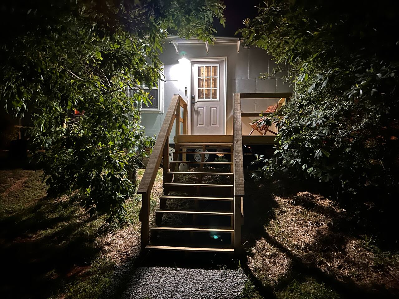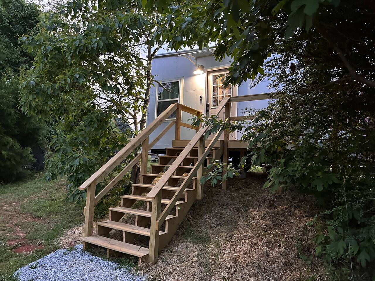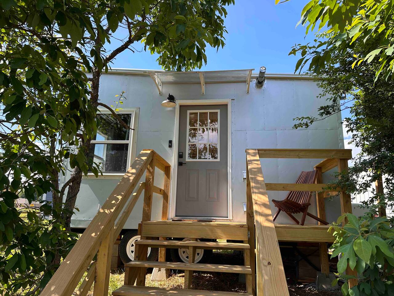 IMPORTANT: PLEASE READ ENTIRE LISTING ALL THE WAY THROUGH PRIOR TO BOOKING. A lot of blood, sweat and tears (and time and money) continues to go into this custom tiny house that I spent a lot of time customizing & decorating (and continue to tweak ever since). My goal with this small tiny house "short term rental village" of 3 is to let people experience TRUE tiny house living - try it on for size and see if they can do it, see what it's like, with 3 totally different sized, themed & styled tiny houses! Is "Going Tiny" something you see youself doing in the future? Just a neat way to travel or vacation? Or perhaps you come to realize its not something for you at all! Either way, I feel you gotta try it to really know! I AIM TO ALWAYS PROVIDE A 5-STAR GEUST EXPERIENCE! ...and I hope & expect to only attract guests who also strive to be 5-STAR GUESTS! :) Thank you in advance!! SOME HISTORY I designed and built my first larger TaHOW tiny house initially for my wife and I to live in - which we did for nearly 2 years until our first child came along, and our plans changed :). I then decided I could showcase all that tiny living has to offer by making my tiny house available to others to stay in so they too could experience all the joys and uniqueness of tiny house living (in a larger tiny house)... My aim is to provide my guests with an unforgettable Luxury Tiny House experience that they want to share with others about (and possibly help them decide if they want to go tiny in the future as well). So please provide the utmost care and respect for the house, its components, furniture and outside spaces so that others will continue to also be able to get the same wonderful tiny house experience for years and years to come. Be aware that guests WILL be held accountable for any damages, theft, etc that may occur during a stay. Thank you in advance for your care and consideration so that I can continue to provide the best stay experience possible for you and future guests! I appreciate you! ------------------------------------------ To quickly reiterate some important rules (More details in HOUSE RULES section at bottom of listing, below reviews): **NO Parties, events or gatherings. **NO smoking or vaping inside or around the tiny house. **NO pets. -------------------------------------------- CLEANING: Between guests, I have professional cleaners clean the place, change the linens, and prepare the tiny house for the next guest. Therefore there is a mandatory cleaning charge for every stay, whether you're staying for one night or longer. They arrive at the property at checkout at 11am and finish up by check-in at 3pm. Sorry, early check-ins are not available as this time is needed to make sure the place is clean and ready for you. However, if you just need to drop off your bags, details will be sent you prior to check-in for how and where on the property you can drop off your bags before check-in time (combination lock for 5x10 mini storage unit on property). Thank you for reading all the way through -- We look forward to hosting you! >>> Go ahead and BOOK your TINY HOUSE STAY with us NOW! <<< :)